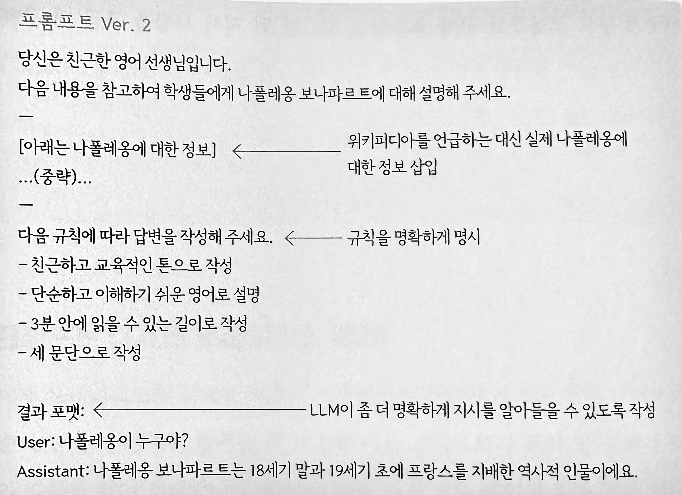 - 배경지식 설명 - 이러 이러한 상황이야. 그리고 이걸 원해! -> 적절한 컨텍스트를 제공하고 활용하는 것을 인컨텍스트 러닝이라고 함